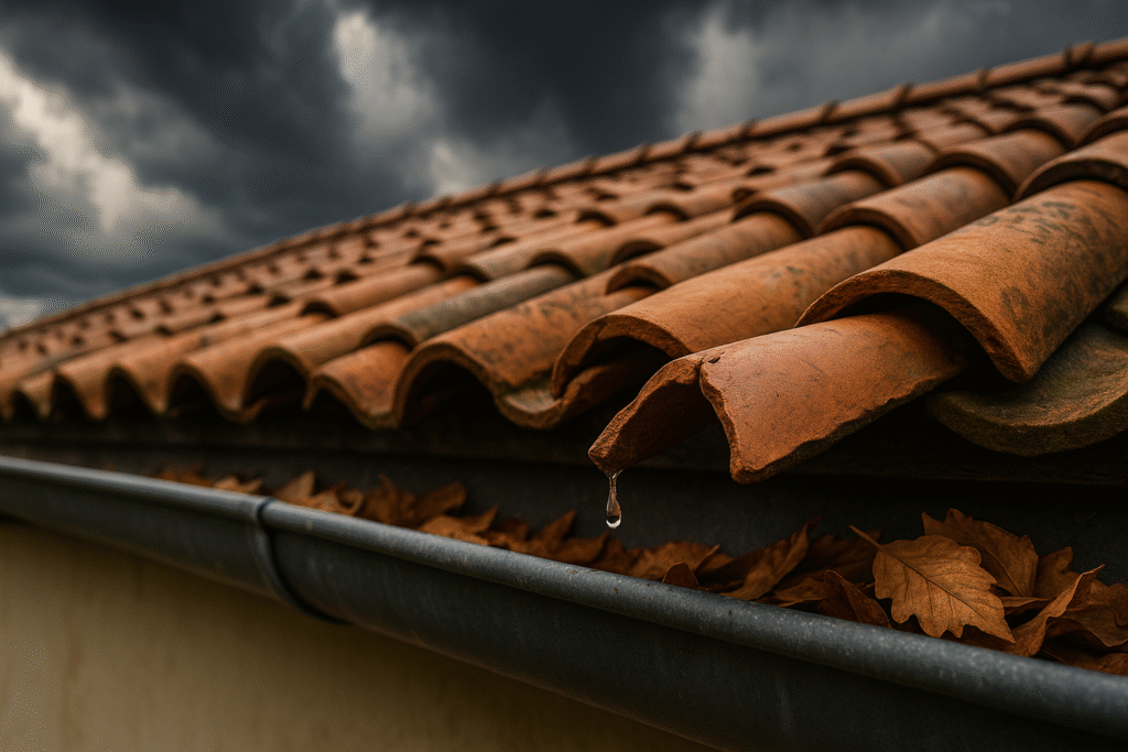 Las goteras son la señal más clara de que algo no va bien. Pueden deberse a tejas rotas, juntas deterioradas o mala impermeabilización.